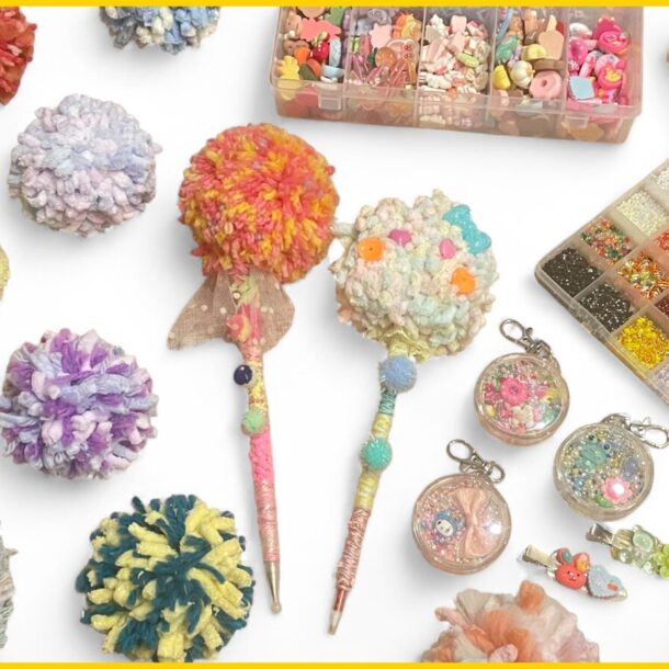 自分だけの可愛いアイテムを作っちゃおう! 「ぼんぼんペン」や「シャカシャカキーホルダー」が簡単にできるよ。