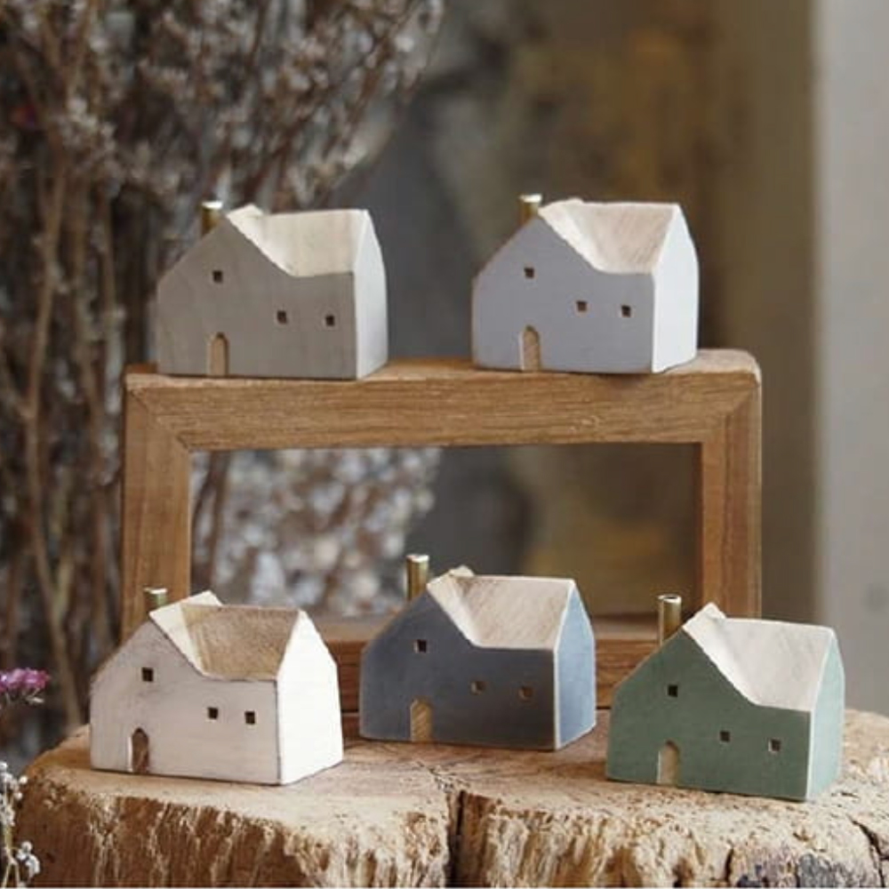 毎年大人気のミニチュアハウス。えんとつにお花を挿すこともできますよ。