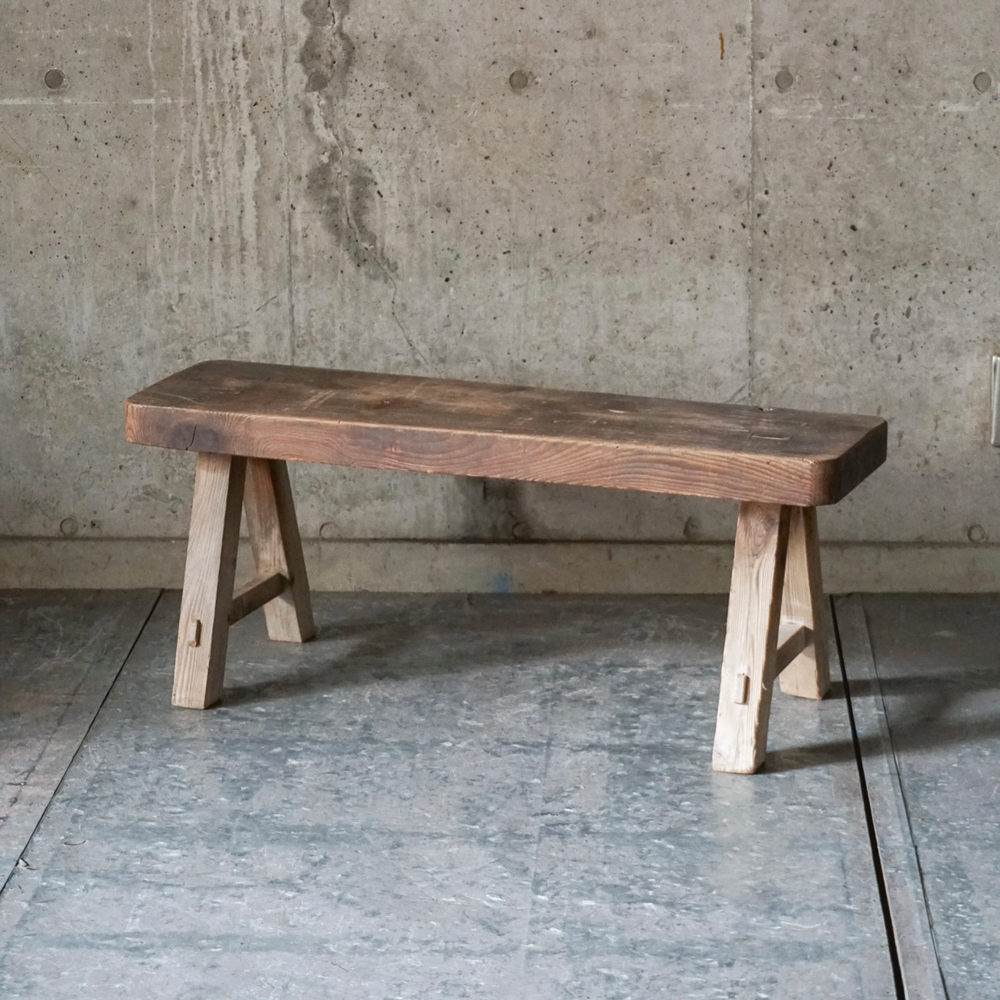 座面の木味が美しい小ぶりなベンチ *イベント出店前に売約済みとなる場合もございます