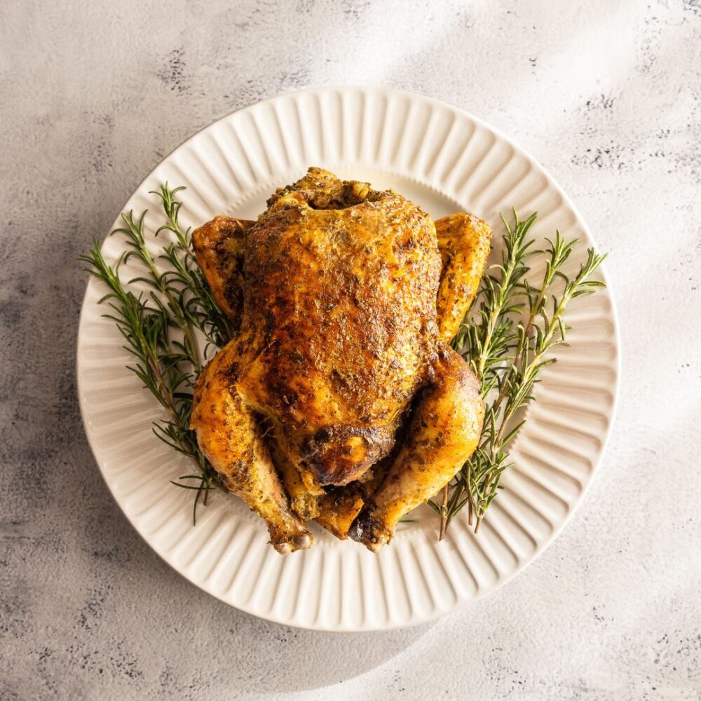 フランスから取り寄せた専用ロースターで豪快に焼き上げた丸鶏です。