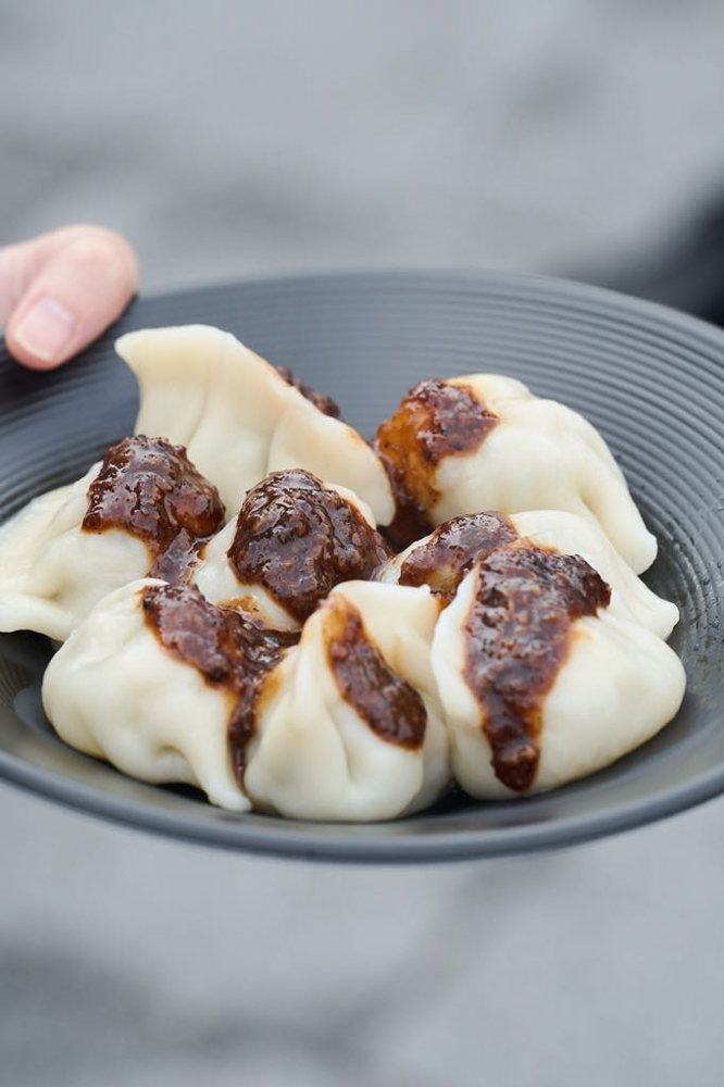 皮とタレを楽しむ熱々モッチモチの水餃子が名物。フルーツ醤油タレor香味辣油のお好きなタレを選んでください。