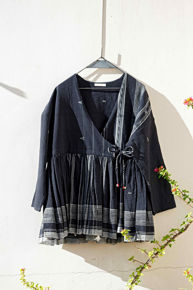 インド在来種のカラコットンで手織りしたサリーから作ったラバリブラウス。インドの繊細な手仕事が感じられる1着です。
