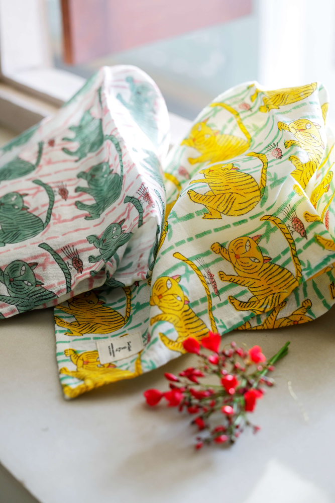 柔らかくて肌触り抜群定番のダブルガーゼハンカチ。人気のトラ柄も秋の東京蚤の市に並びます!