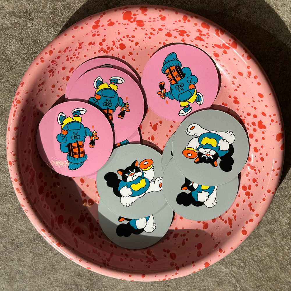 「グッズ」オリジナルキャラクターのステッカーやマグネット。トートバッグやマグカップなどをご用意します。