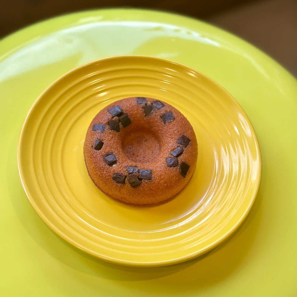 「チョコレートバタードーナツ」チョコチップ入りの焼きドーナツは定番人気。やさしい甘さがティータイムにピッタリ。
