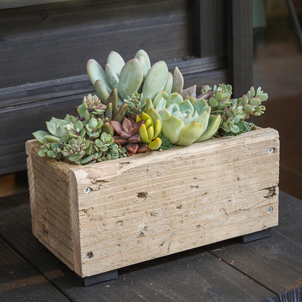 新商品の足場板を使用したミニプランター。多肉植物と相性ばっちり。