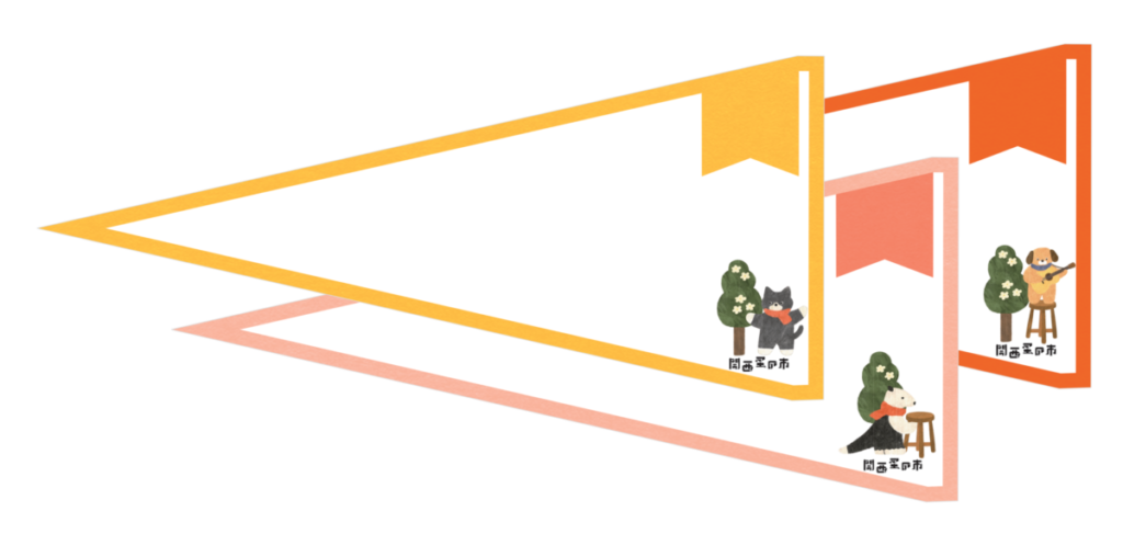 会場内の各ブースに掲げられている店名の入ったフラッグ。その中に描かれている動物たちのイラストの中に、アリクイさん、たびちゃん、ワンちゃんが隠れているかも! かくれんぼしているその3匹を見つけたら、それぞれ写真に収めましょう! インフォメーションでその写真を見せてくれたみなさまに、特別なB6サイズのノートをプレゼントいたします。お買い物の間もブースに掲げられたフラッグにご注目です!