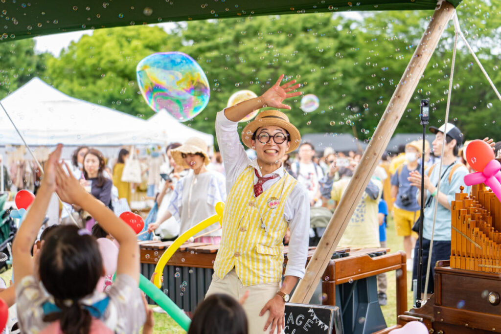 今回新たに会場に登場する「パフォーマンスステージ」にもご注目です。今回の関西蚤の市は、いつどこでパフォーマーに出会えるかわからないドキドキとワクワクに加え、必ずパフォーマンスが見られるサーカスのようなステージとその空間も一緒に楽しんでくださいね。