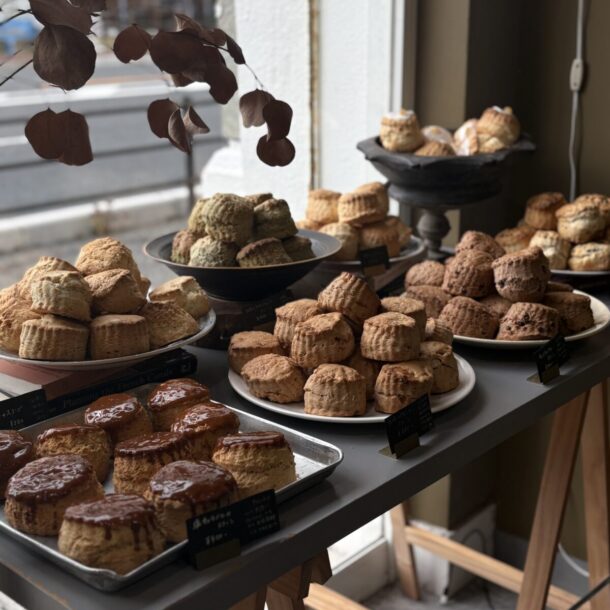大阪たっぷりのバターを使ったクロワッサンやパイのようなスコーンの専門店です。