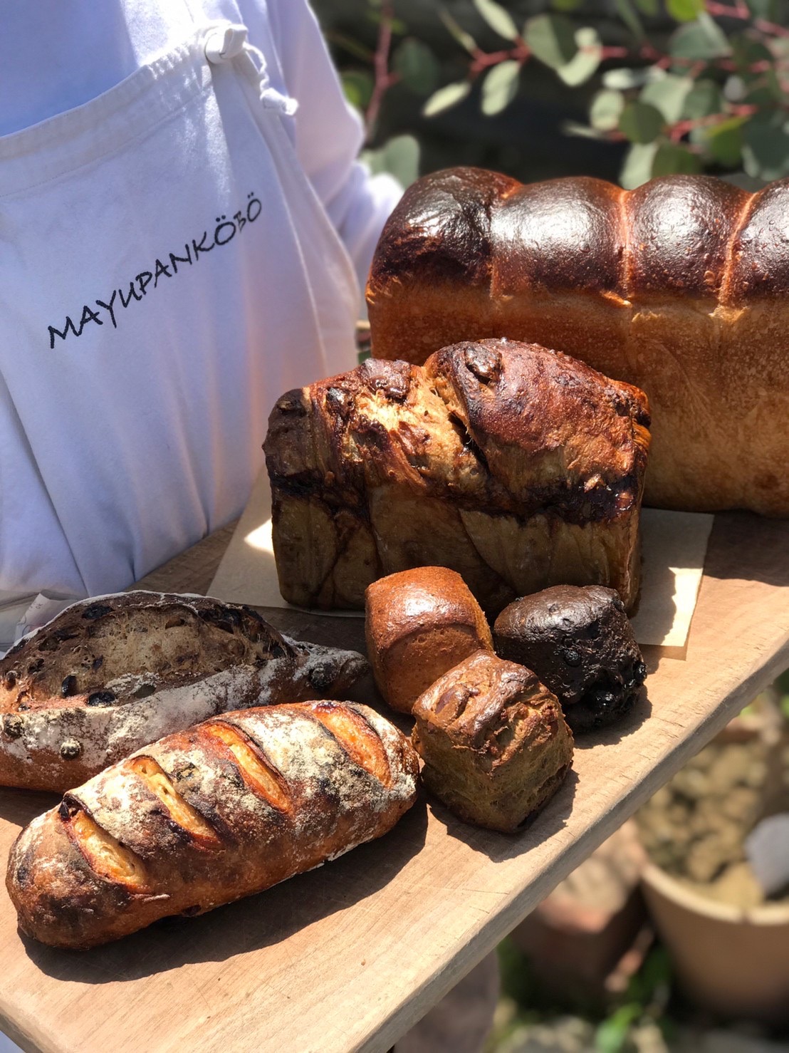 田舎の小さなお店で、関西の方々には無名のパン屋だと思いますが、大阪に住んでいて、そしてパンの経験値は京都で積み上げていたため、わたしには第二の故郷であるこの関西に、強い想いがあり、出店のお誘いをいただいたときに「ただいま!」と思いました。生命力のあふれる心を満たせるパンをモットーに、売買の時だけではなく、まゆパンをおうちに持ち帰ったあとにも、何か優しい気持ちになれるような、そんな事をパンという手段で叶えたく、頑張っています。