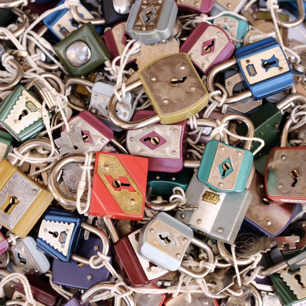 「カラフルな南京錠」廃業する金物屋さんで見つけた南京錠。お気に入りの色を見つけてくださいね。.