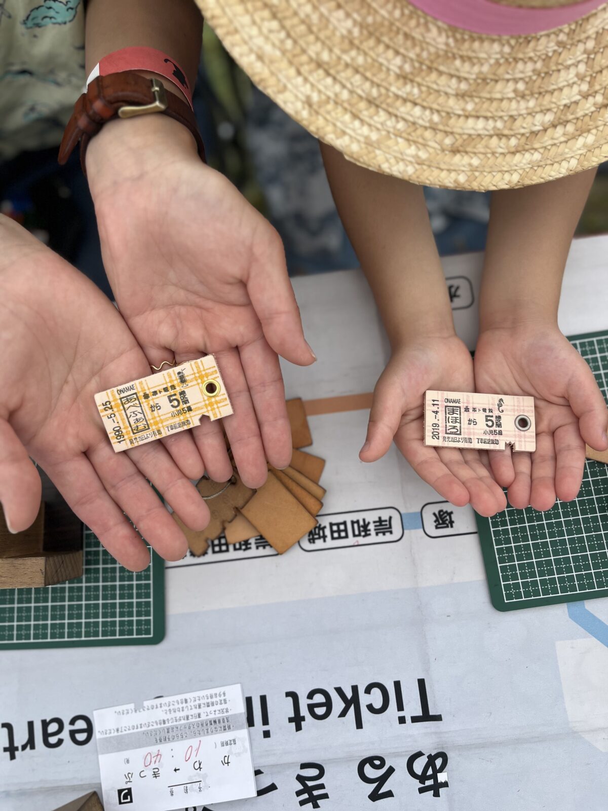 こんにちは! 私たちは旅する券売所、アサクサ車輌製作所です。本革の切符にスタンプして製作する「かわのきっぷ®︎ワークショップ」は、お名前(ひらがな6文字まで)や誕生日、好きなマークを入れられる、世界にひとつのオリジナル本革きっぷキーホルダーです。誰にでもある大切なもの、想い出などの「心の中にあるきっぷ」を発券(発見)してみませんか? お子さまも大人も、みなさまで体験していただけます。限定柄のきっぷも登場! みなさまのご乗車お待ちしております。