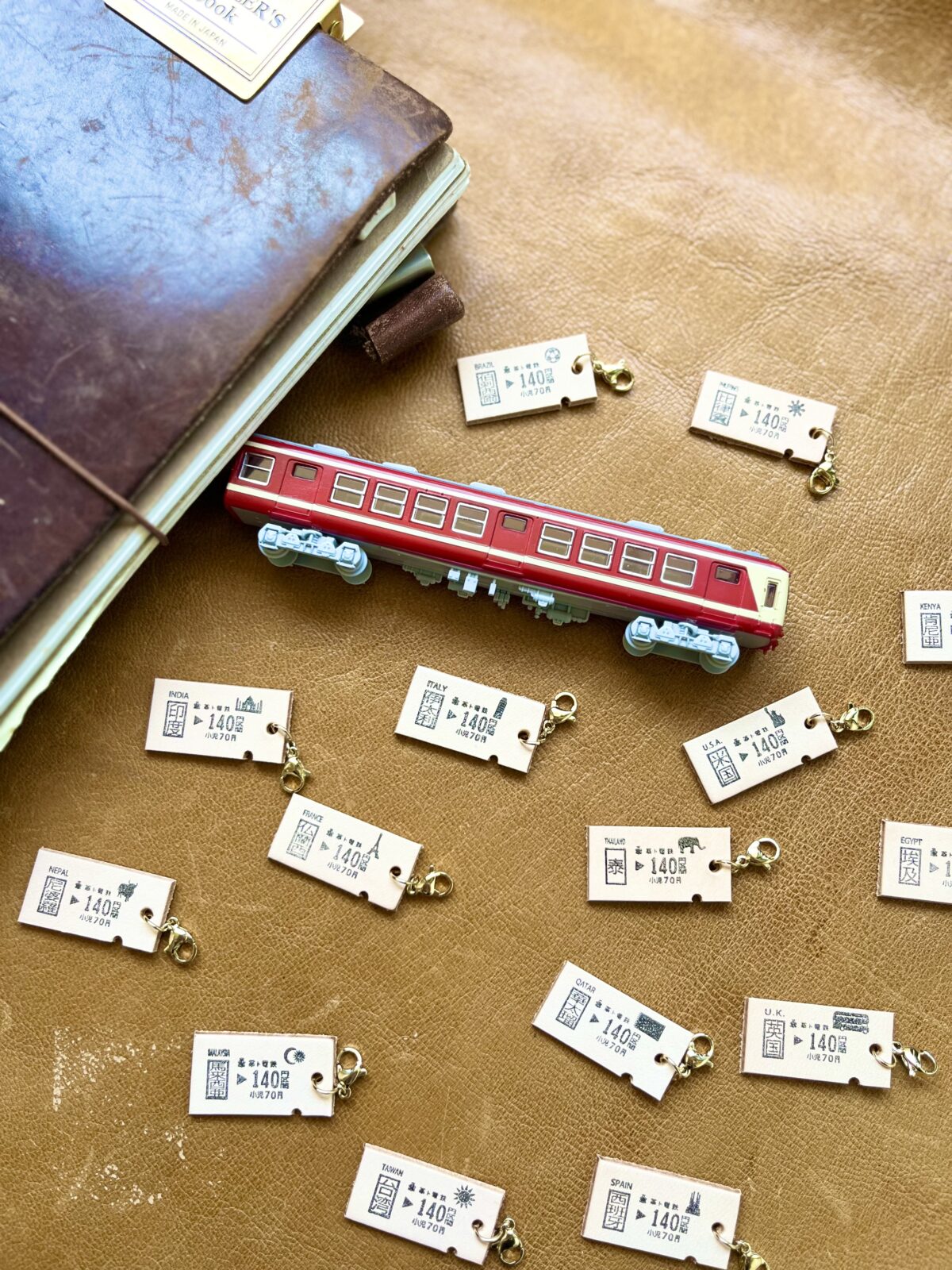「革のチャーム」28ヶ国への海外旅行を楽しめるチャーム、手帳などにつけて。