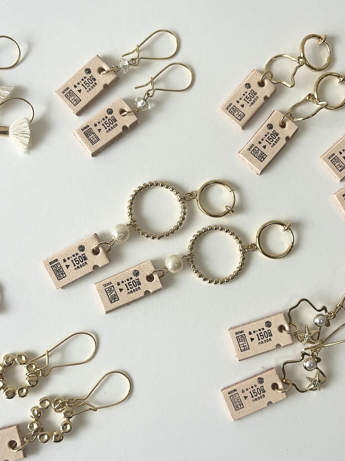 「革ト銀河鉄道」星の駅名が付けられたアクセサリー。星と星を行き来する銀河鉄道へのご乗車お待ちしております。