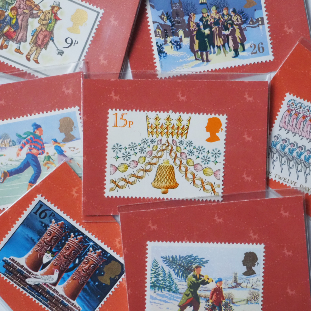 「クリスマス切手」イギリスのクリスマスモチーフの古切手を集めました。カードやラッピングに使ったりコラージュしてみたり、工夫次第で楽しく使えます。