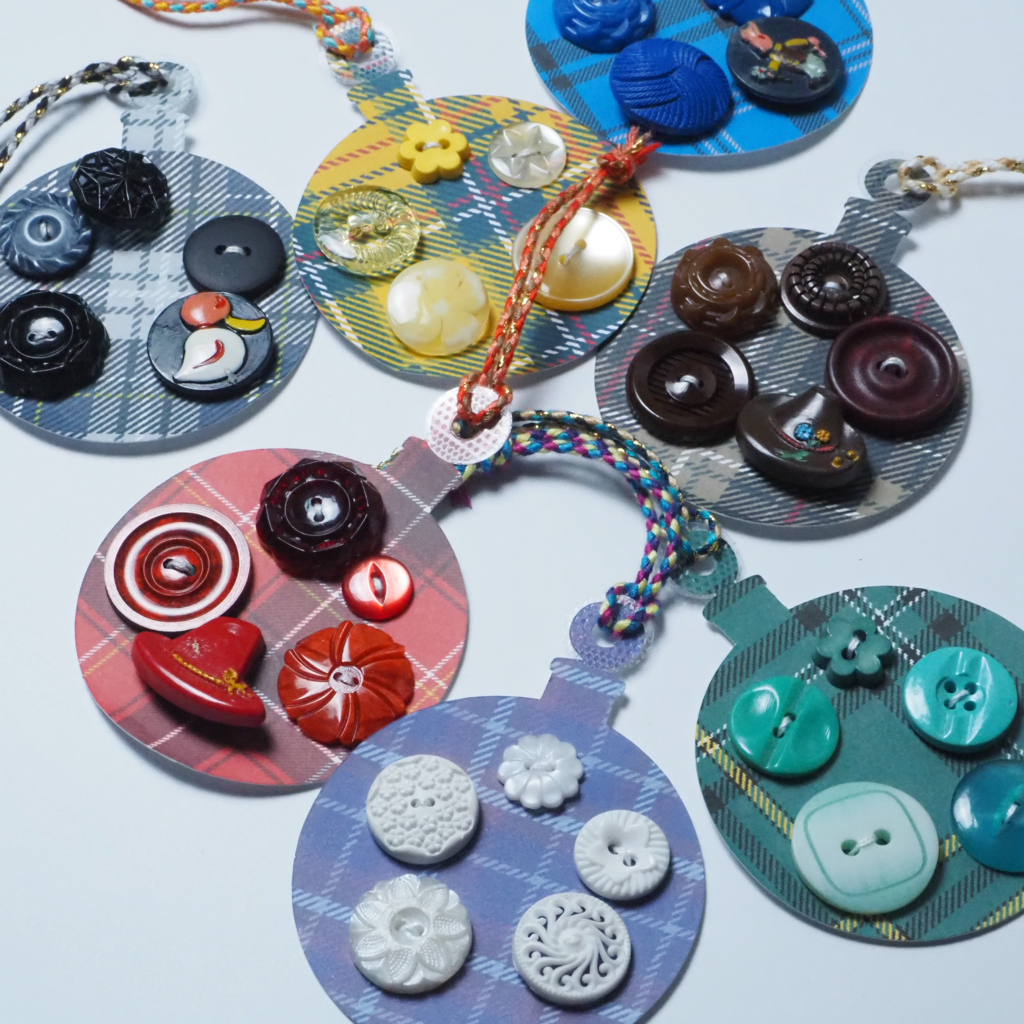 「ボタンオーナメント」ヴィンテージボタンを組み合わせてオーナメント型に。もちろんボタンとして使っても、ツリーなどのオーナメントにしてみても。