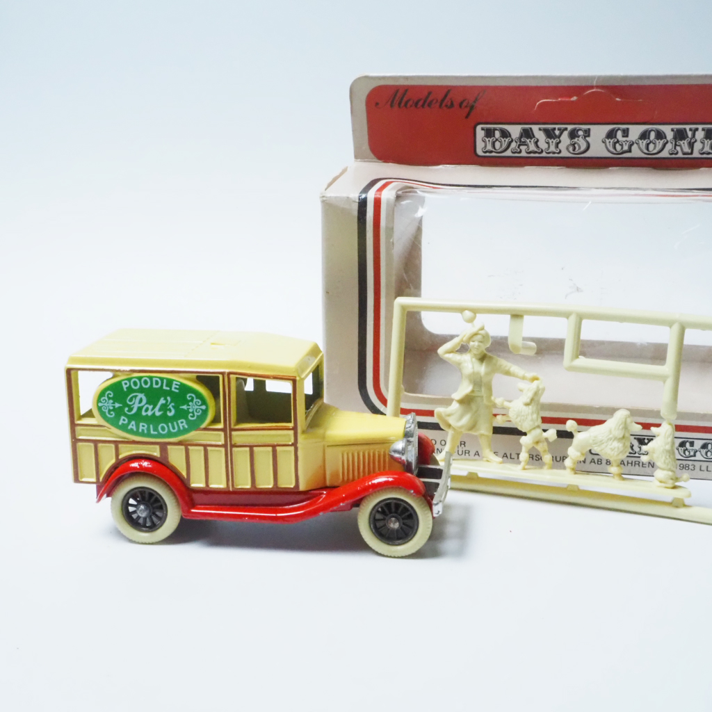 「LLEDO ミニカー」イギリスLLEDO社のヴィンテージミニカーは、種類多数で珍しい物もたくさん。プードル専門サロンのミニカーには、飼い主のご婦人とプードルたちが付いていっています。