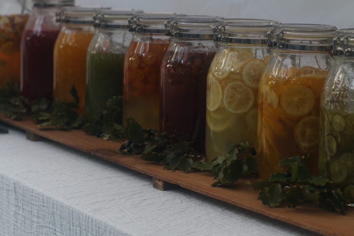 「季節の果実ドリンク」地元静岡の旬の素材で拵えた果実シロップのドリンクソーダ水、天然水、ミルク、ほろ酔いカクテル等お好みの割り方でお楽しみください。