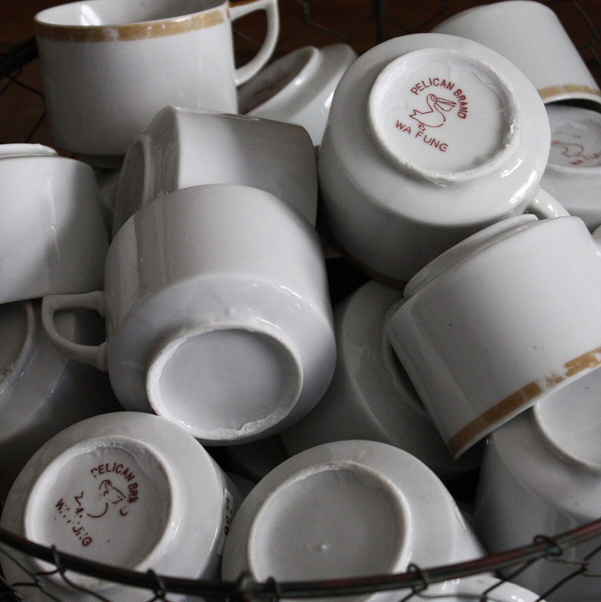 「白磁カップ」スッキリとしたデザインとバックスタンプのペリカンが目を引く古手の白磁カップ
