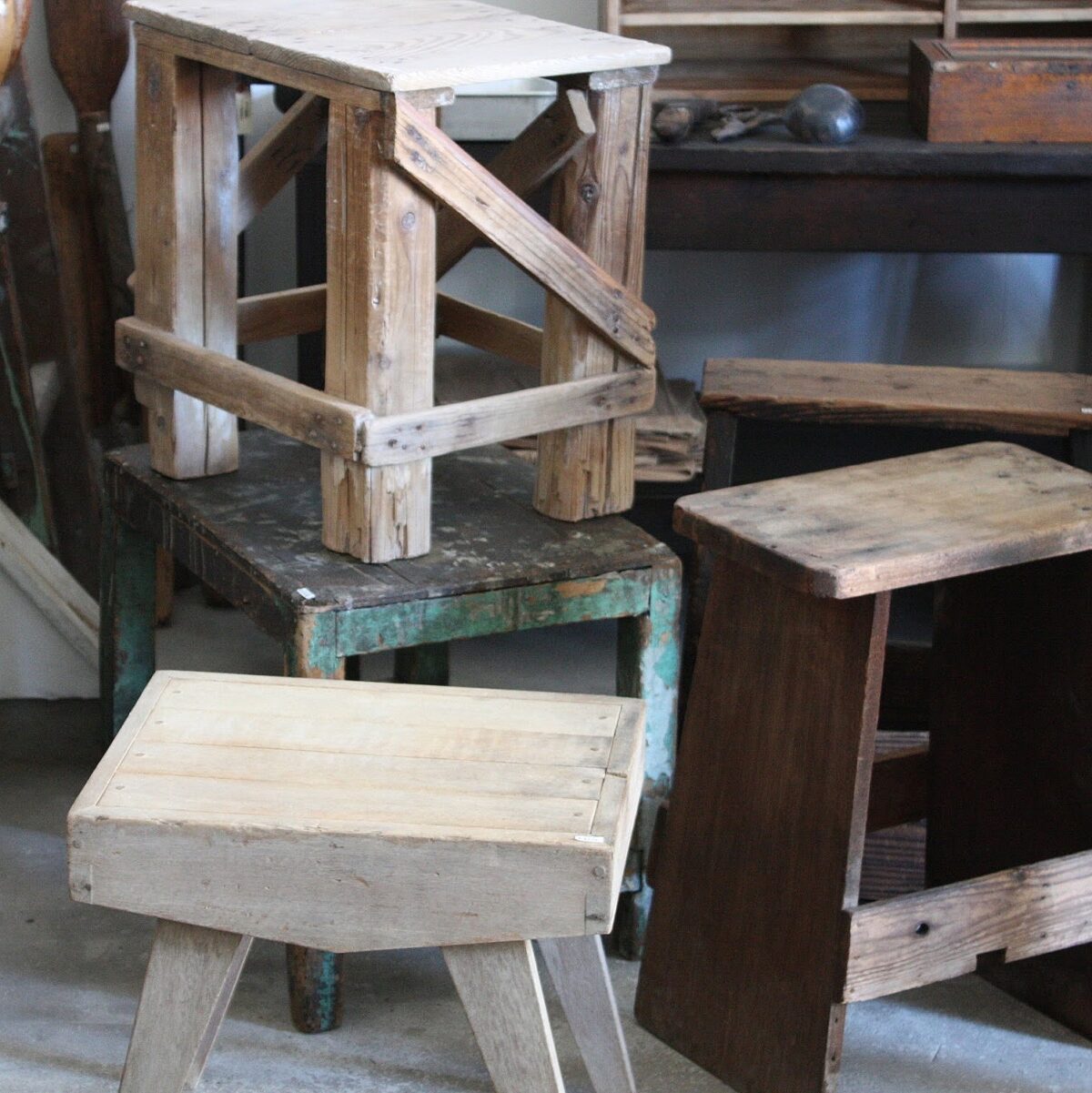 「木の台」工場や作業ばで活躍した味わいのある木製台