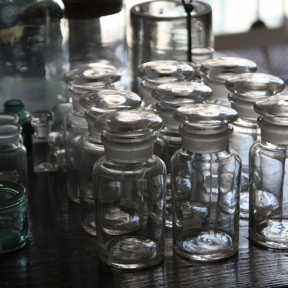 「蓋付きガラス小瓶」スパイス入れ等に良さそうなサイズ感の蓋付きガラスビン