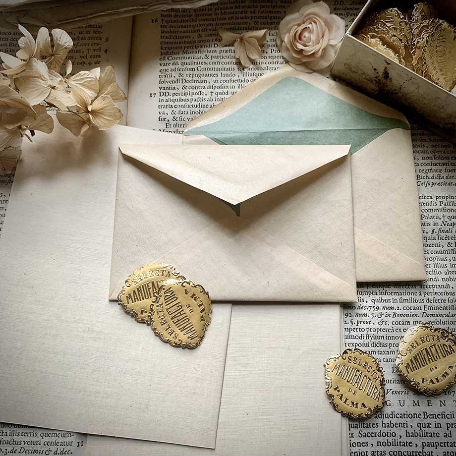 「フランス古い封筒セット」めっきり見つからなくなった薄い紙と二重になった封筒。たくさんはありませんがセットにしてお持ちします。
