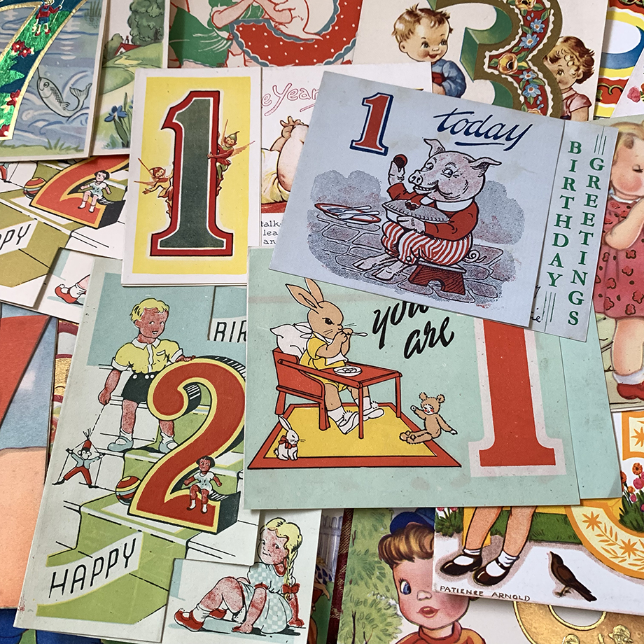 「イギリスのバースデーカード」たくさんのカードを持ち帰った中からバースデーのみを集めてみました。