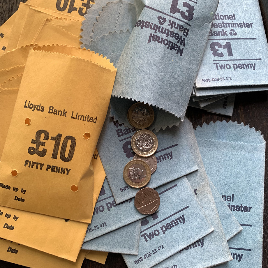 「イギリスのコインバッグ」少し厚みのあるコインバッグ。ポチ袋的に使うのも面白いかも?