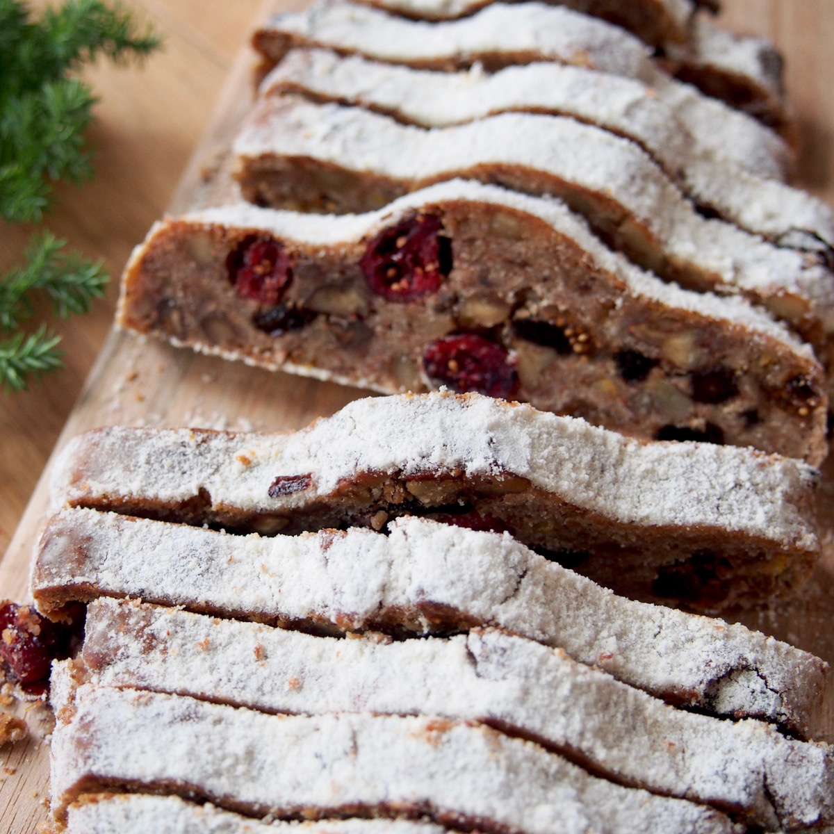「米粉シュトーレン」芳醇なラム酒に漬けた数種類のドライフルーツやナッツを米粉の生地にぎゅっと詰め込み、天然酵母で発酵させたシュトーレンです。