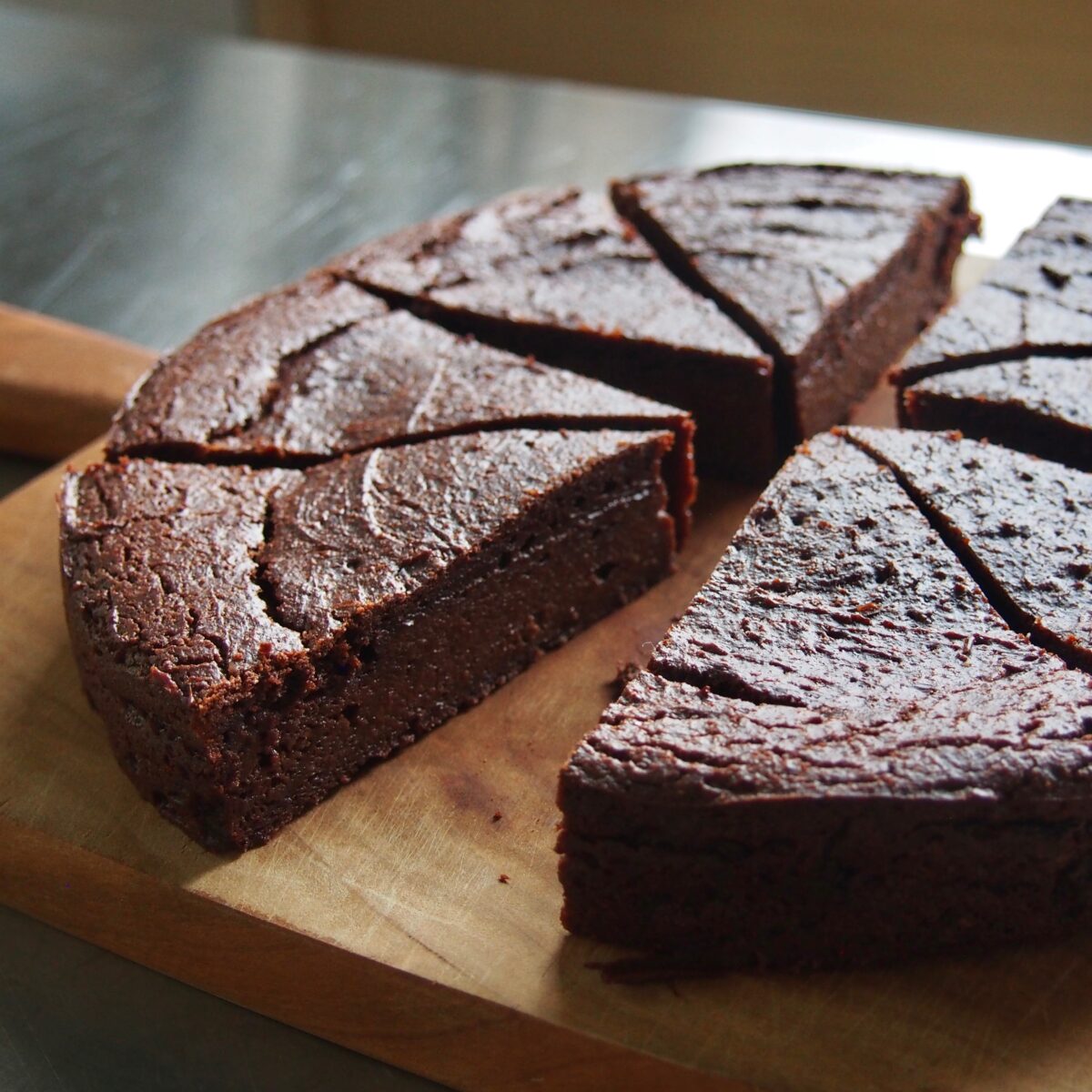 「絹豆腐カカオラムケーキ」絹豆腐がベースの生地にラム酒を加え、ビターなカカオもたっぷり使った濃厚なカカオケーキ。冷やすとしっとり、温め直すとふんわり食感に。