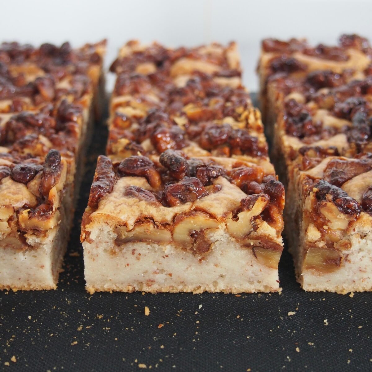 「キャラメルナッツケーキ」ふわっと軽めの生地の上には、ほろ苦くザクッとした食感のキャラメリゼナッツを。上下の対照的な食感を一口で楽しめます。