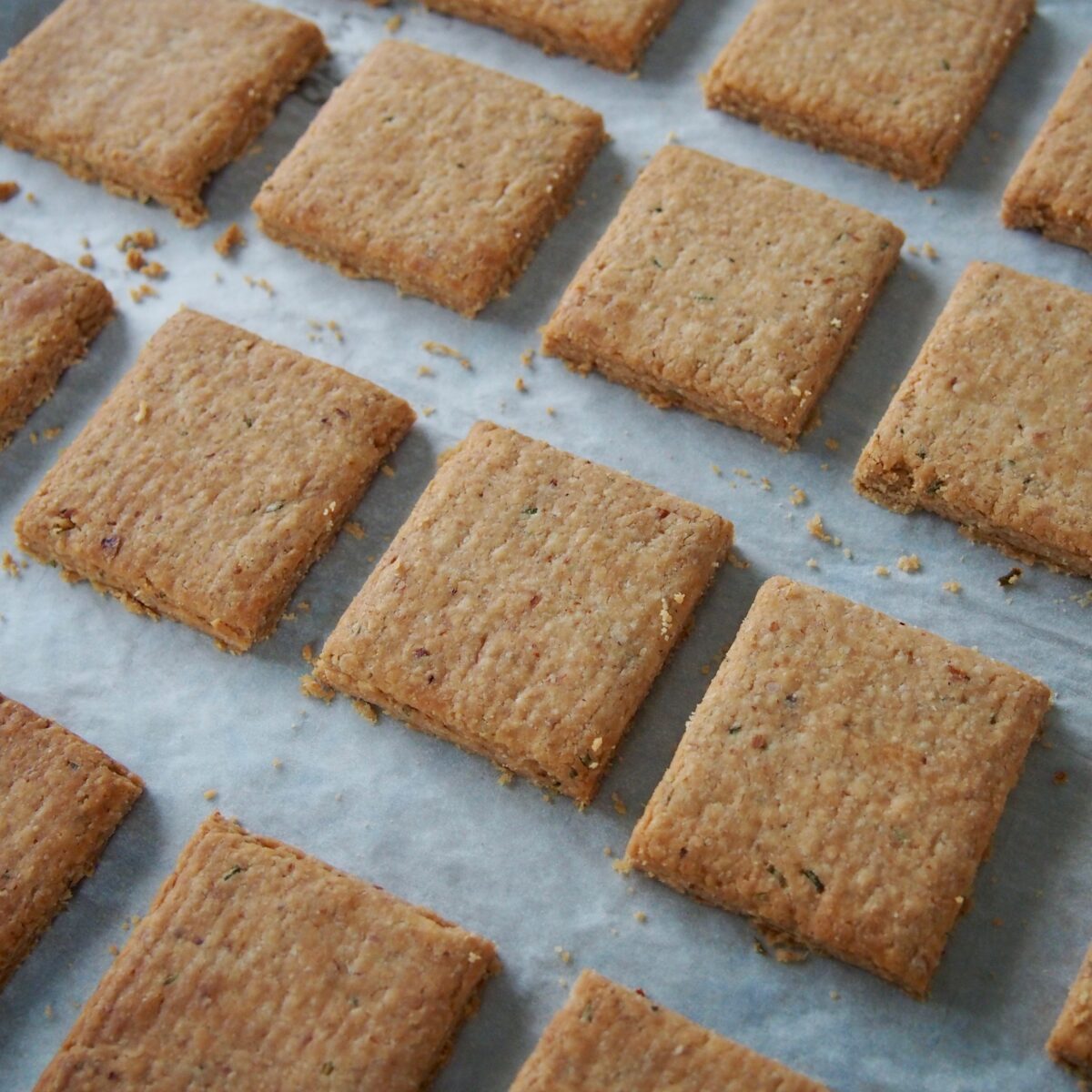 「ローズマリースパイスクッキー」豊かな香りのフレッシュローズマリーをたっぷりと刻み、特長ある3種類のスパイスを効かせた、香ばしいサクサク食感のクッキーです。