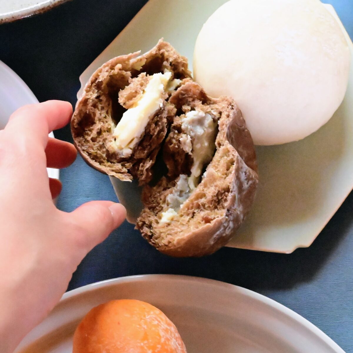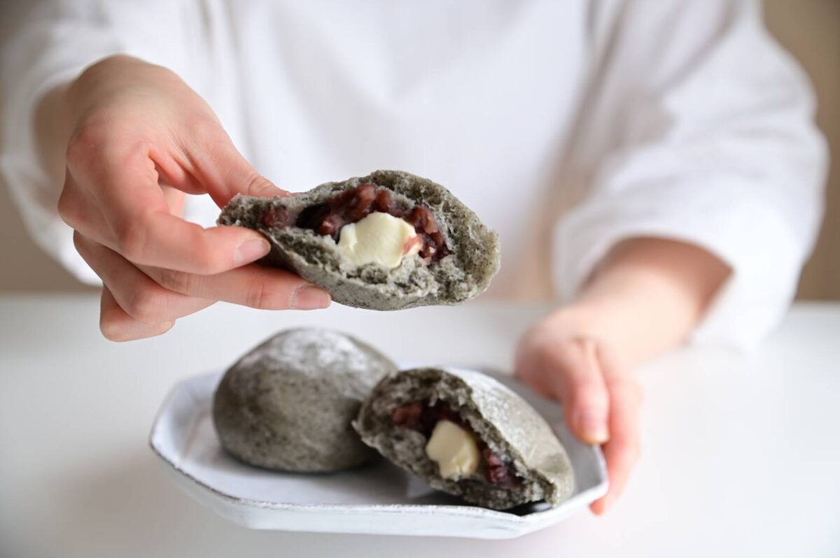 「黒ごまあんクリームチーズ」店主イチオシメニュー! 自家製のつぶあんにクリームチーズを包みました! 一度食べたらやみつきなお客様多数!