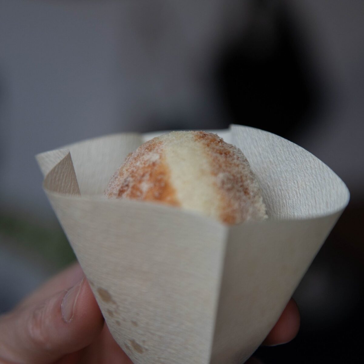 「揚げたてあげぱん」現地でサクサクの揚げたてを召し上がって頂けます! お味はきび砂糖、きな粉、シナモン、あんこから。その日の気分で!