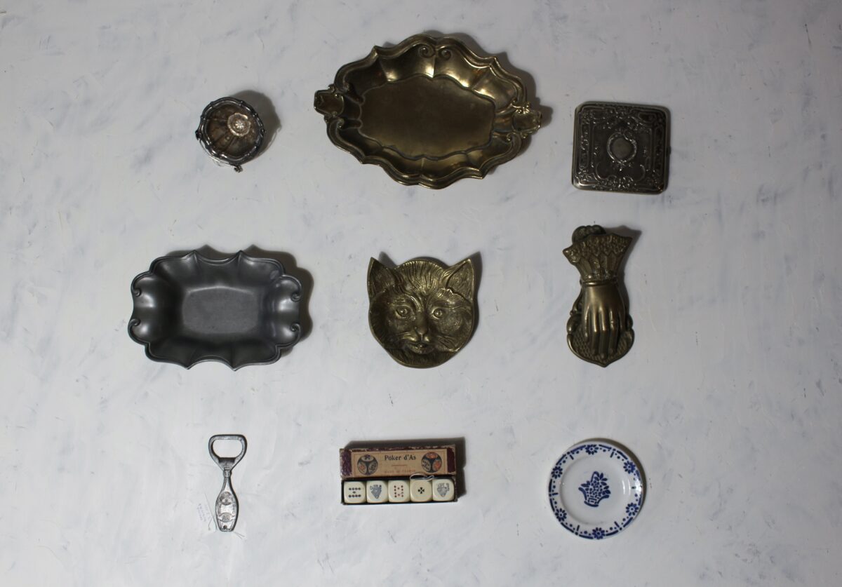 フランス雑貨色々。トレイを中心に。ポーカーダイス。ペリエの栓抜き。茶漉しなど。