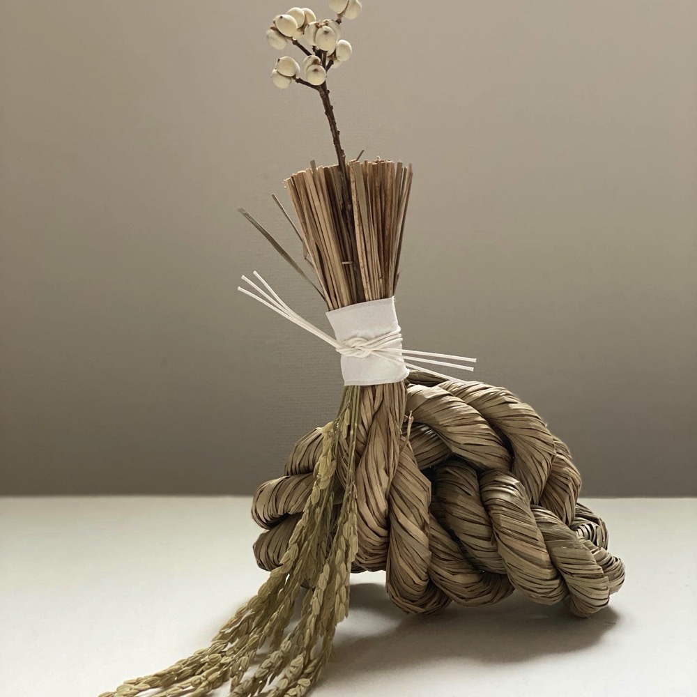 真鍮のフックを使って吊るしても置いても飾れる末広がりな形か縁起の良い「山型のお正月飾り」