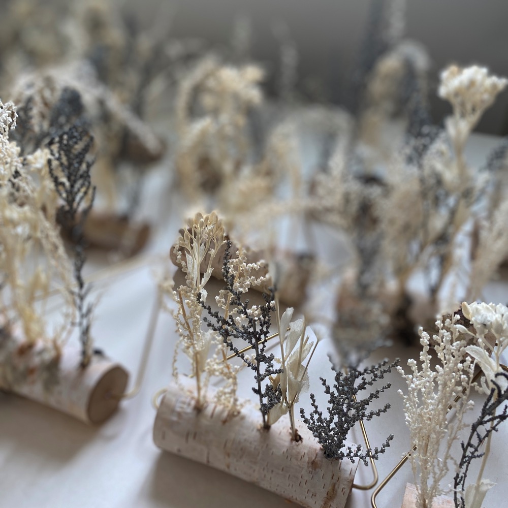 三重県津市美杉町のアトリエ「ラフイユ」では、植物の美しさを大切にしながら作品を制作しています。今回は、冬の森をテーマにした枝物スワッグや白樺を使ったオブジェ、天然の色素で染色したプランツジュエリーを展示します。自然素材を活かした独自の作品をぜひご覧ください。また、ヤドリギを用いた冬の森のディスプレイもお楽しみいただけます。