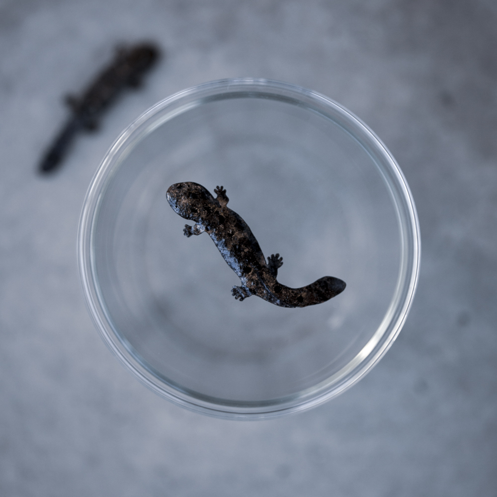 「オオサンショウウオ」叩いたり、焼いたり、オオサンショウウオらしい質感を追求したブローチ。