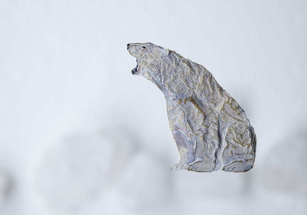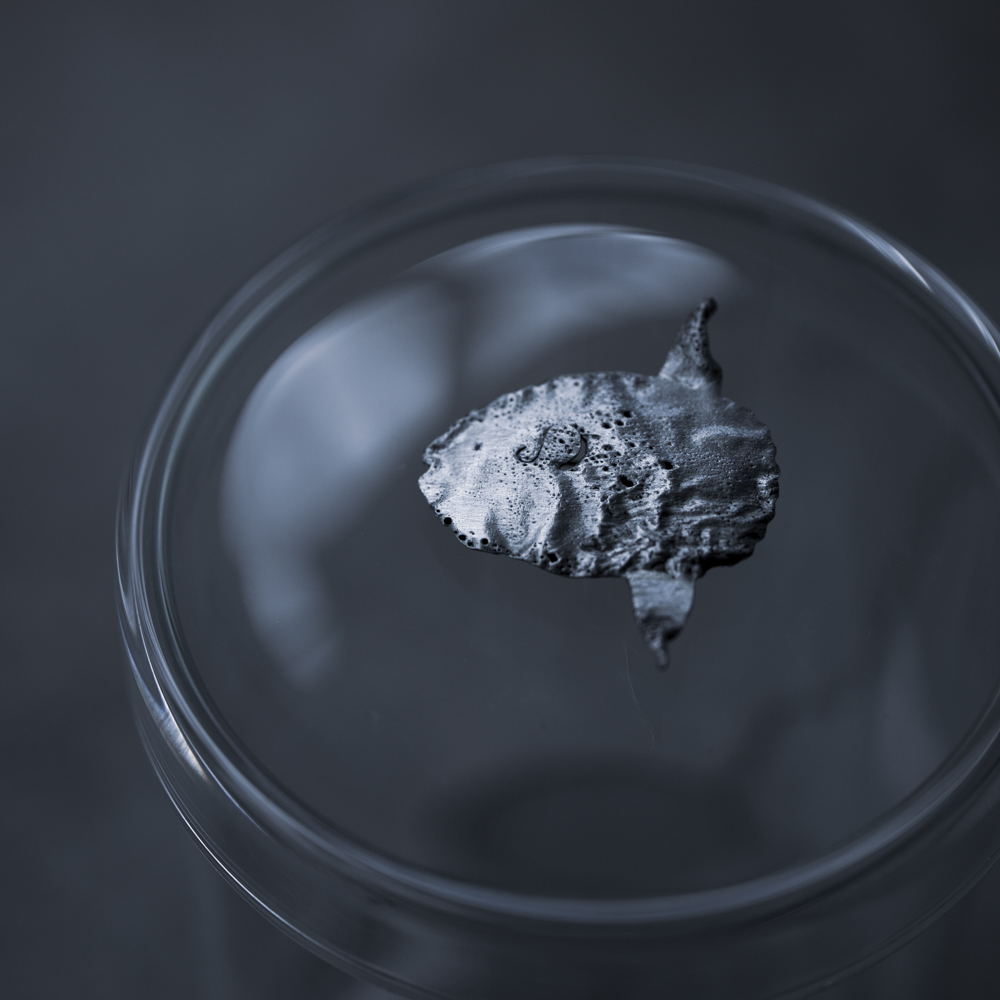 私の作品は、生き物をモチーフにしたものがほとんどです。金工の伝統的な技法と向き合いながら、それらを更新し、常に新しい表現を探求しています。特に、火やその残痕による表情を深く掘り下げ、さまざまな生き物に重ね合わせた、生体におけるナチュラルマークのような傷や痕跡が特徴的です。