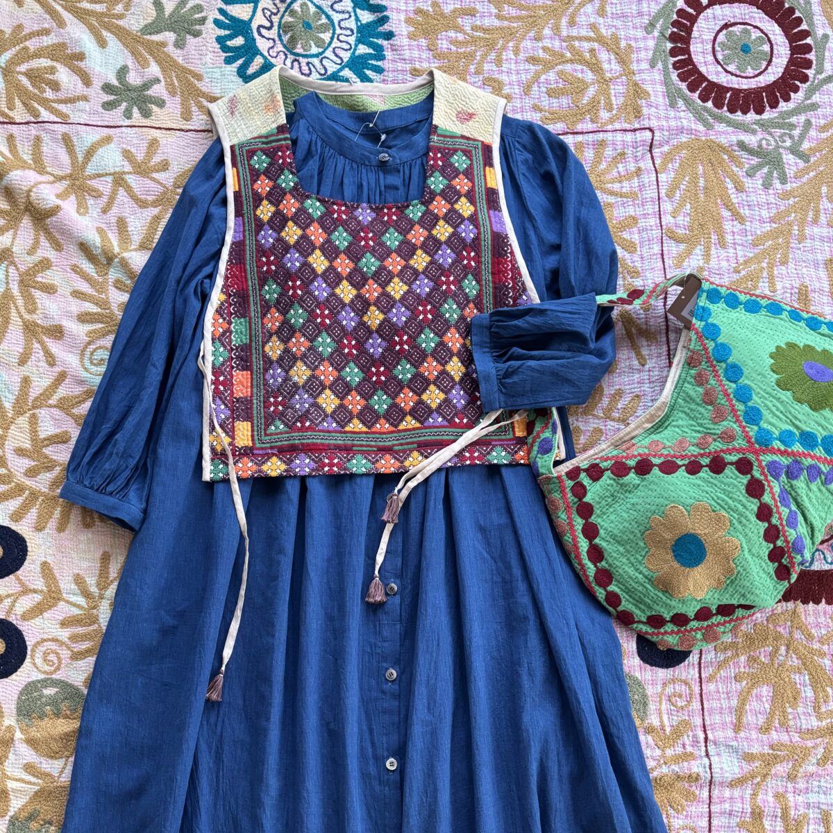 「刺繍古布ジレ」バローチ族の民族衣装から美しい刺繍部分を使ったジレ。お洋服のアクセントに。