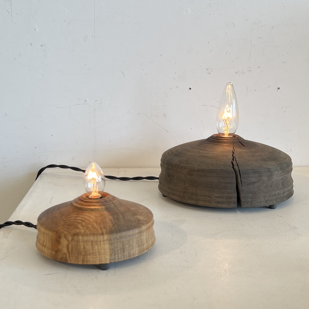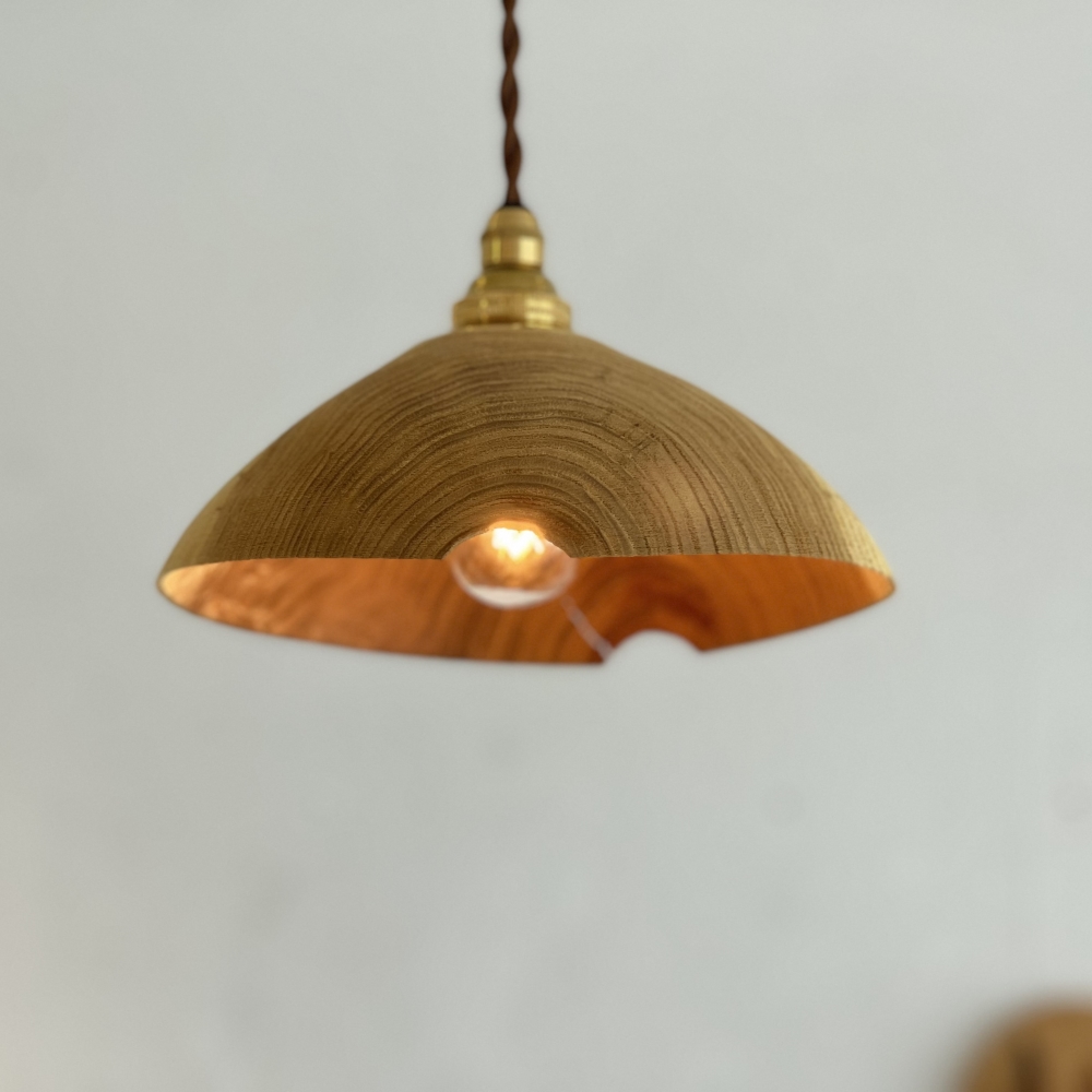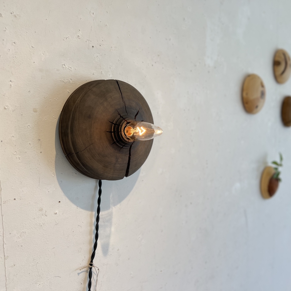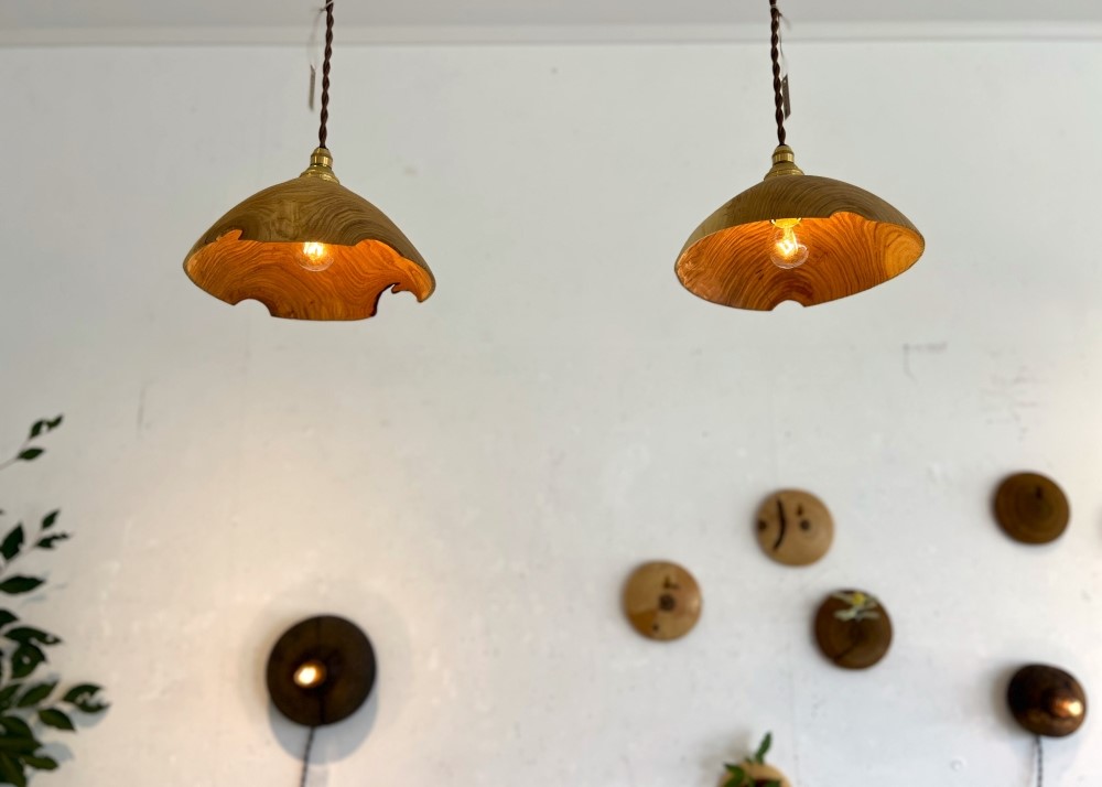 「ケヤキのランプシェード」富士山麓のケヤキの木からつくったランプシェードです。
