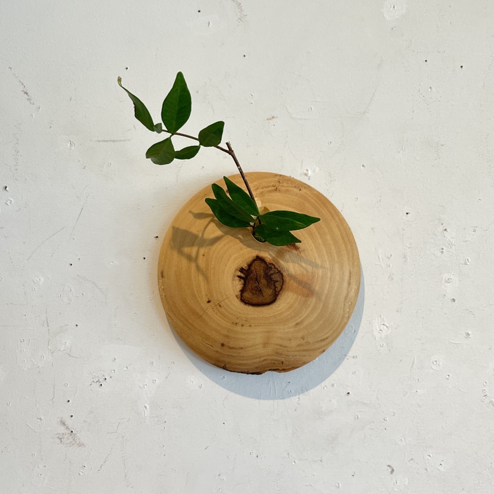 「壁掛け花器」壁に掛けて使う 一輪挿し。様々な樹種でご用意します。