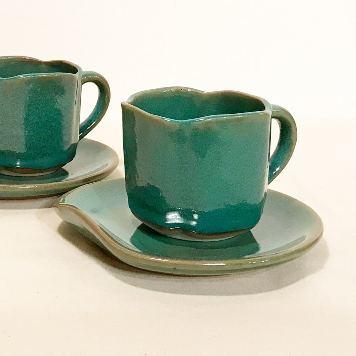 「異形濃緑カップ&ソーサー」和と洋の狭間を漂うような、独特な造形と釉薬のバランスが絶妙です。