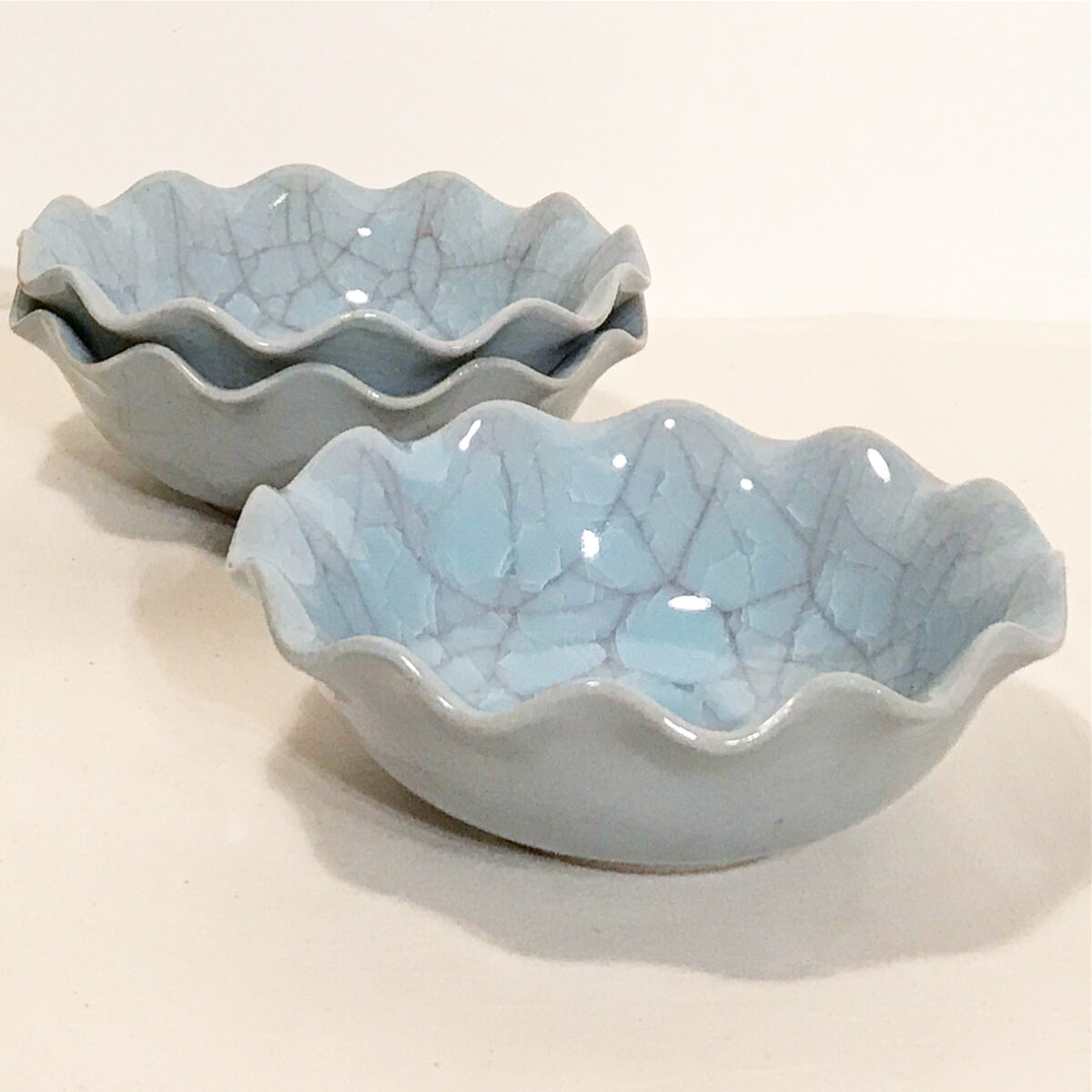 「フリルを纏った貫入の深皿」洋の造形と和の釉の絶妙なバランス感が好きです。