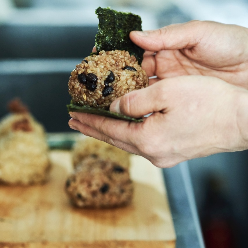「玄米おにぎり各種」玄米100%でつくったおにぎり。もちプチ食感のおにぎりは、ほかにはない驚きの味わいです。意外な組み合わせの具材も楽しい発見に。