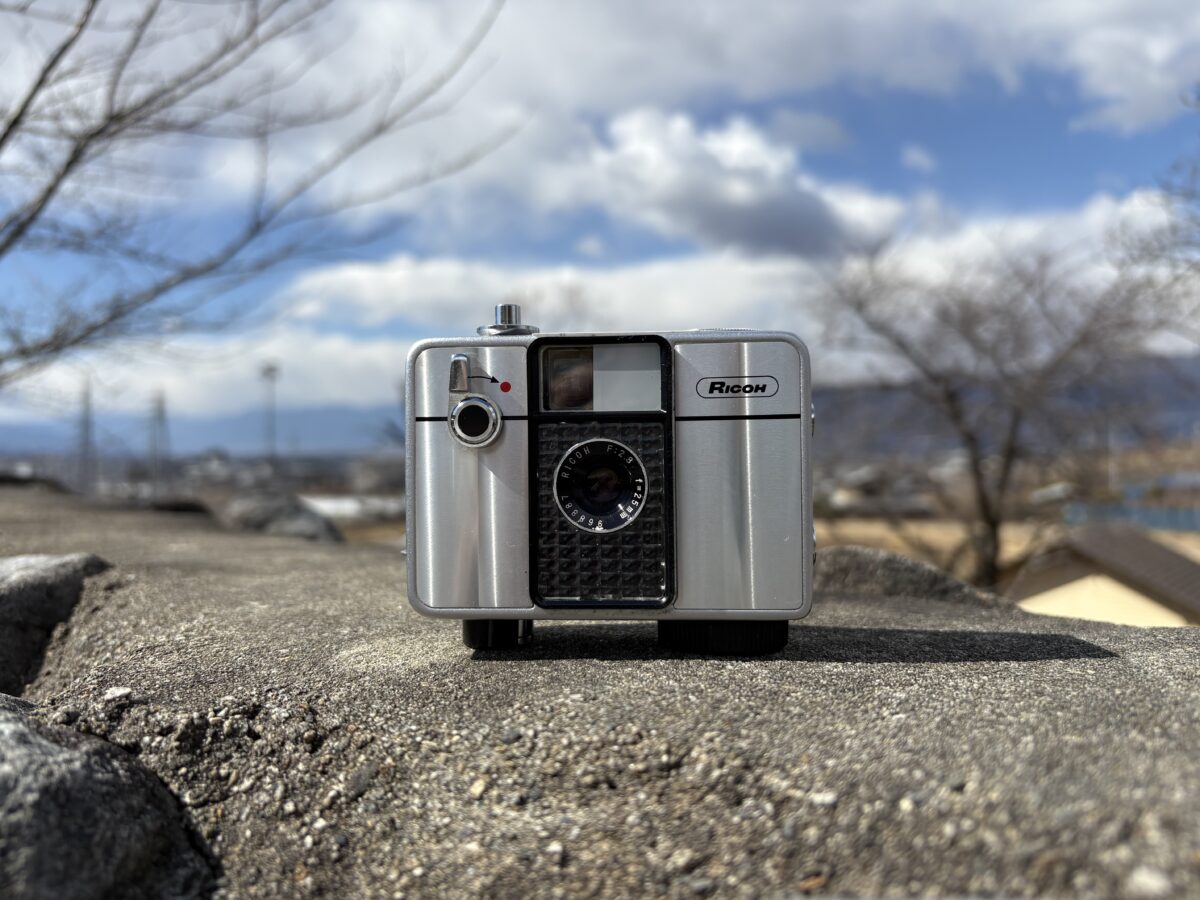 「リコーオートハーフ」ゼンマイ巻き上げのハーフサイズカメラです。今見てもオシャレなデザインです。