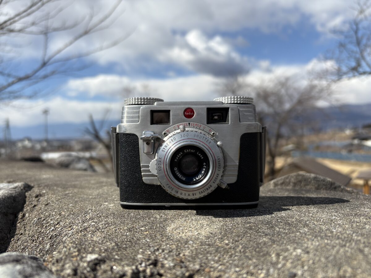 「コダックシグネット35」1950年代のアメリカを感じさせるカメラで、どことなくミッキーマウスに似ている気がします。