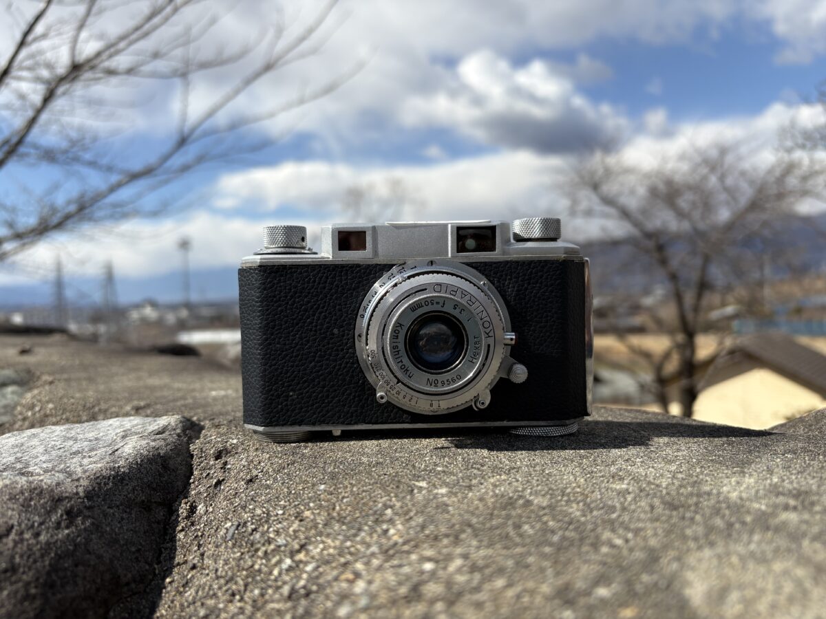 「コニカ1」レンズを引き出して使う、古い国産カメラです。