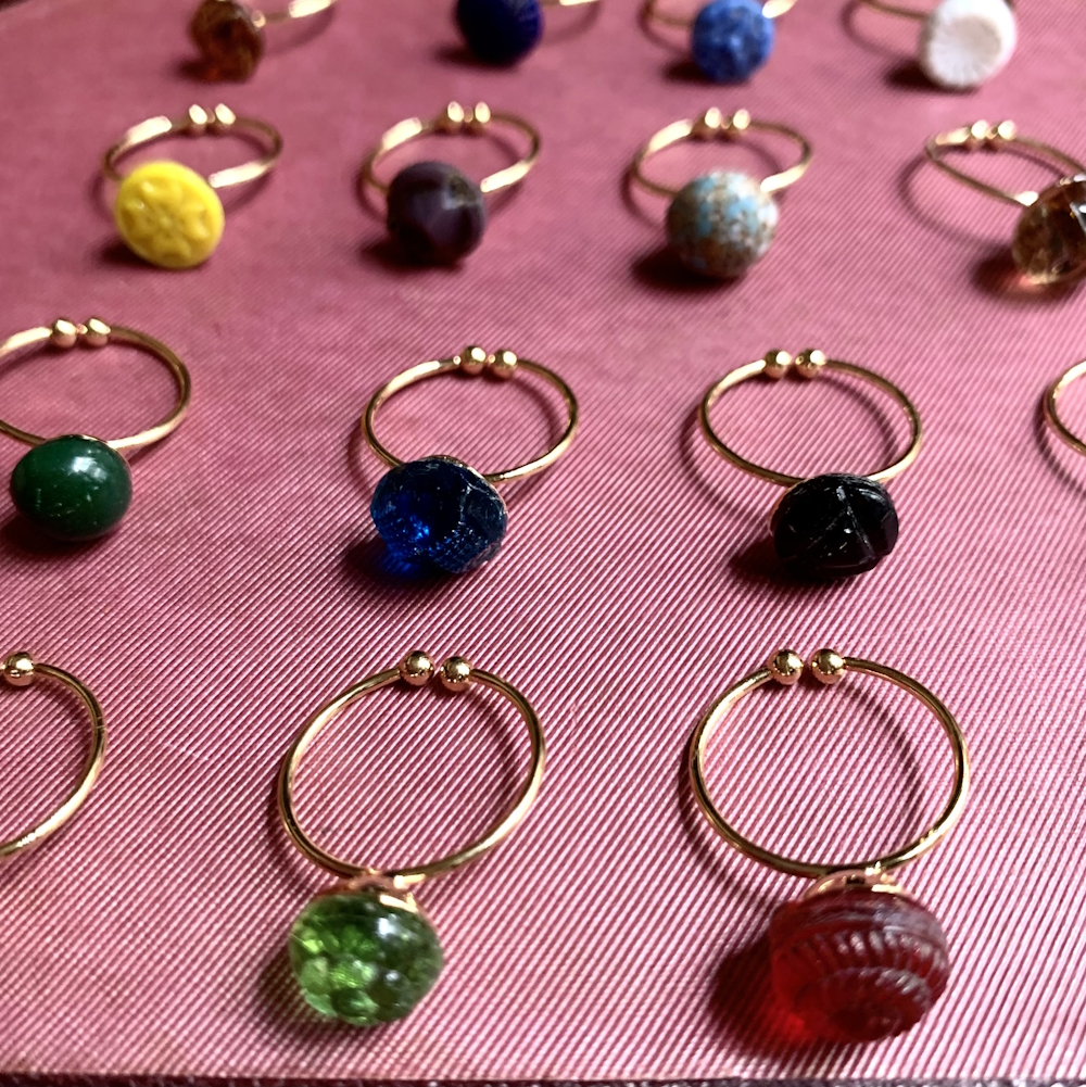 「チェコガラスボタンリング」細かいデザインのガラスボタンを使用したオリジナルのリング。お気に入りのものがきっと見つかります。