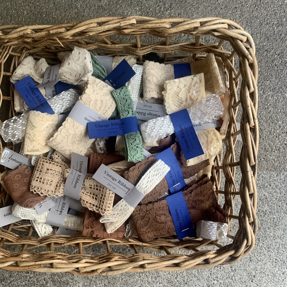 「ヴィンテージカットレースリボン」くすんだレースの風合いが素敵な一品。